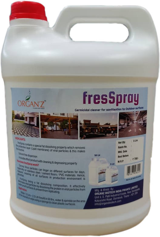 fresSpray being a fat dissolving composition. It effectively eliminates viral particles by dissolving the protein in viral particles from water proof surfaces & prevent from replicating.